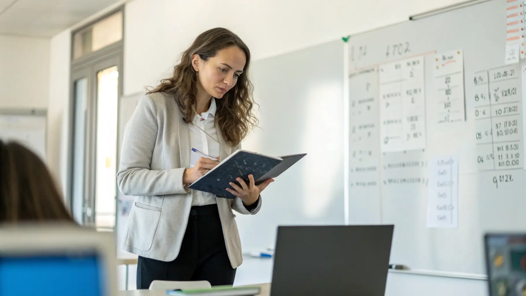 Учитель математики и информатики занимает активную позицию в образовательном процессе, помогая ученикам освоить ключевые концепции и навыки.